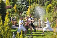 mit verschiedenen Wand- und Nackenmassagedüsen, Wasserpilz, Röhrenliegen mit Luftsprudel. Kinderwelt, Kindergarten (Kinderbetreuung saisonabhängig).