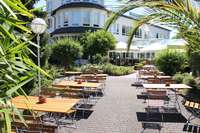 Gartenanlage und große Gartenterrasse mit Gastronomie