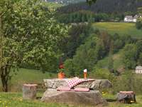 Zum Hotel gehört ein kleines Wäldchen mit rustikaler Blockhütte sowie eine große Spiel- und Liegewiese. Im Sommer erwarten gemütliche Gartenplätze unsere Gäste.